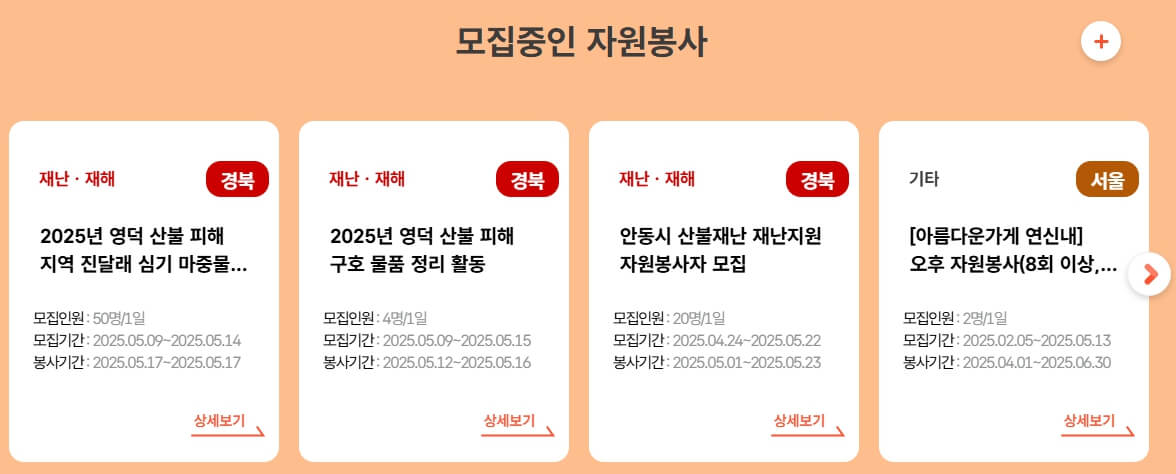봉사활동 참여·신청·실적 조회·인증서 발급까지 모든 과정을 온라인으로 해결할 수 있는 사이트입니다.