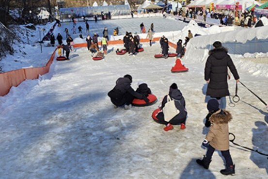 미끄럼 사고 위험이 적어 어린아이를 동반한 가족도 안심하고 즐길 수 있으며, 백운계곡의 웅장한 겨울 설경을 배경으로 다양한 체험과 포토존을 함께 즐길 수 있습니다.